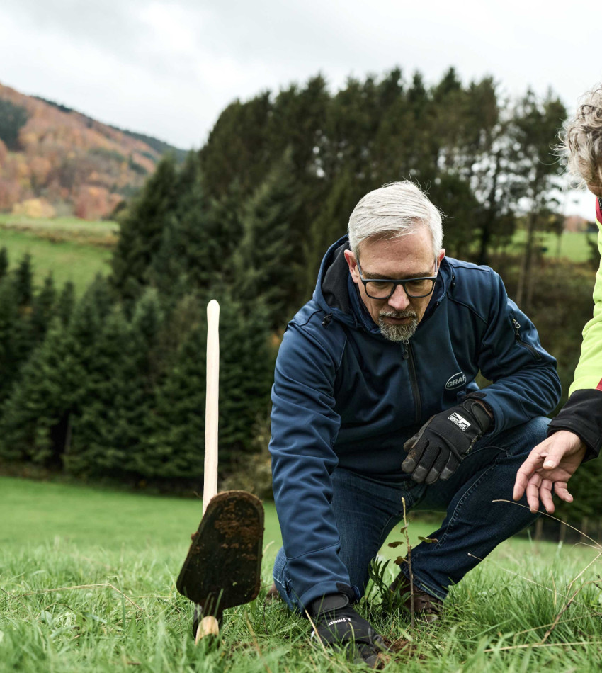 Das ist doch mal eine sinnvolle Weihnachtsaktion: Der Regenwasserspezialist GRAF hat Ende November an unserem #heimatwald Projekt teilgenommen. „Statt der ansonsten üblichen Weihnachtspräsente möchten wir in diesem Jahr unseren Kunden, aber auch der Region ein Stück Nachhaltigkeit schenken“, sagte Inhaber Otto P. Graf. 25 Graf-Mitarbeiter fuhren mit dem Geschäftsführer und unseren Angestellten auf den Ignazhof des Landwirts Tobias Himmelsbach, der die Fläche hinter seinem Hof zur Aufforstung freigegeben hatte. Stolze 500 Setzlinge der Baumarten Elsbeere und Speierling wurden gepflanzt. Beide Baumarten bringen eine höhere Trockenheitstoleranz mit und gelten daher als Baumarten der Zukunft, weil sie mit den veränderten Klimabedingungen besser zurechtkommen. Der Revierleiter Günter Schmidt und weitere Förster waren mit vor Ort, um die Pflanzung anzuleiten. Vorab wurden bereits Eicheln gesät, sodass in einigen Jahrzehnten idealerweise ein bunter Mischwald steht. Die Aktion hat allen Beteiligten großen Spaß gemacht – wir freuen uns auf nächstes Mal!