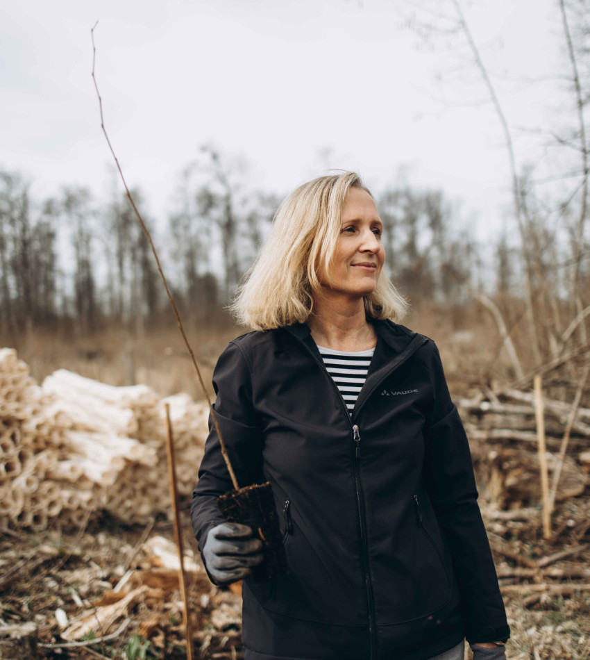 Denn der Wald hinter den Wohngebieten in Lahr-Langenwinkel liegt in einer Senke. So tief, dass hier von Zeit zu Zeit das Grundwasser aufsteigt. Auch und gerade durch die Wetterextreme infolge des Klimawandels. Die 200 Hektar, die wir uns mit Heimatwald-Stammpflanzer Michael Huber von Schwarzwaldküchen in Ettenheim und dem Ehepaar Hort aus Karlsruhe vorgenommen haben, gehören zu dem Waldgebiet, das Forstrevierleiter Matthias Neumaier als „komplett verwässert“ beschrieb. Macht nix. Steffen Hort, Steuerberater von Maisenbacher, Hort und Partner in Karlsruhe hatte sich schließlich eine Herausforderung gewünscht. Aus dem Steuerdschungel direkt rein in die Natur!